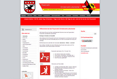 Die Feuerwehr Grindelwald-Lütschental - Angeschlossen an die FKB und aufgesprungen auf das gemeinsame Webprojekt - Die Feuerwehr informiert auf der Selbstadminitrierten Website regelmässig ihre Mitglieder über Events, News und vielem mehr.